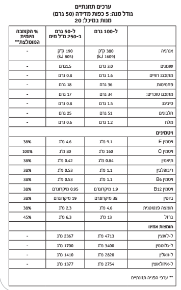 Mix 5 level scoops (50 g) with 250 ml of water.